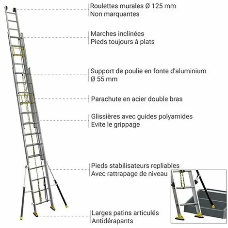 – Réglage ultra précis : s’adapte aÌ€ des dénivelés d’environ 15cm.