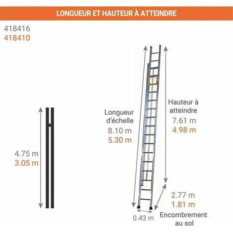 – Echelle pompier avec profils aluminium fermés surdimensionnés prévus pour supporter le poids de 2 personnes.
