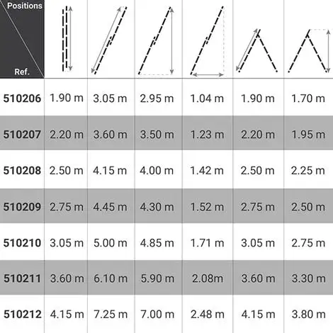 – Hauteur de travail maximale est égale à la longueur d’échelle, en position déployée ou auto-stable, + 1.00m