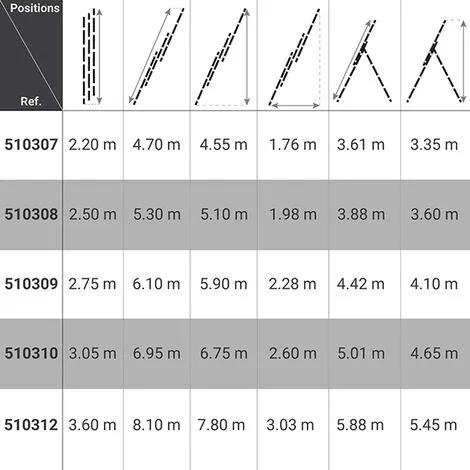 – Hauteur de travail maximale est égale à la longueur d’échelle, en position déployée ou auto-stable, + 1.00m