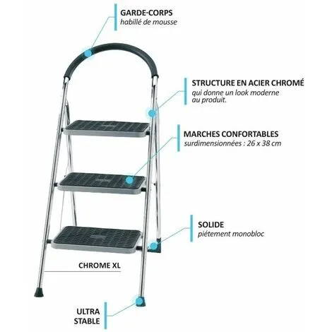 Les avantages de ce marchepied double fonction Centaure Chrome XL sont :