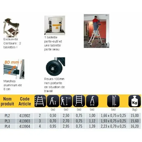 – Deux tablettes de série : Tablette outillage avec espaces de rangement. Tablette peinture (charge jusqu’à 25 kg). Crochet esse porte-seau.