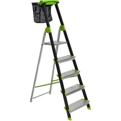 – Transport et stockage aisés grâce à la partie arrière de l’escabeau qui se clipse derrière les marches.