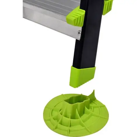 – Des sabots qui ne s’enfoncent pas dans le sol et qui stabilisent l’escabeau sur les sols irréguliers. En usage intérieur, ils se retirent facilement