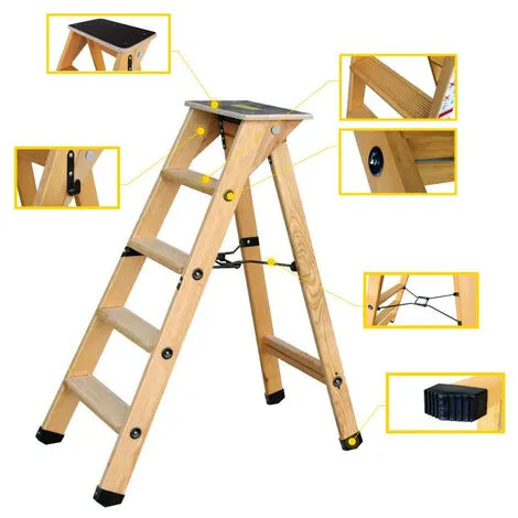 - Accès par larges marches striées. Les marches sont renforcées par une tige métallique et des écrous qui permettent de resserrer chaque marche.