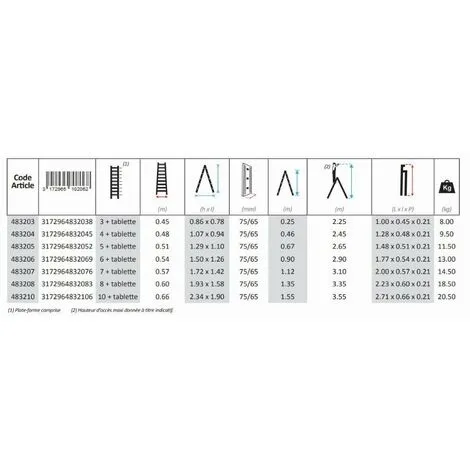 - Crochet de suspension sur le côté (à partir du 5 marches).