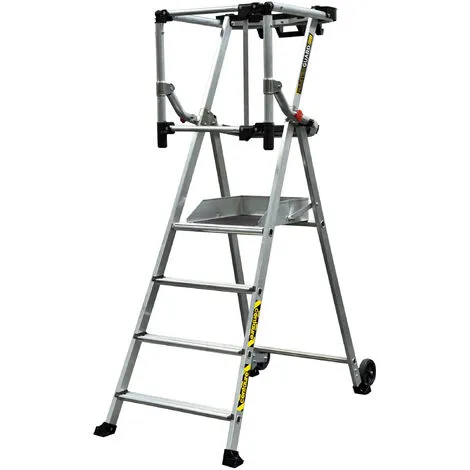 Les nouvelles plates-formes individuelles roulantes permettent une stabilité parfaite sans étayage. Elles s’installent rapidement et facilement en deux mouvements !Le système de pantographe breveté à fermeture automatique permet d’accéder facilement et confortablement sur le plancher. Il permet également une protection 360° de l’opérateur. L’accès au plancher antidérapant (0,40 x 0,50 m) se fait par de larges marches antidérapantes de 80 mm. Les roues (diamètre 100 mm) facilitent les déplacements en position ouverte ou fermée sur les chantiers professionnels. Les déplacements sont également facilités grâce à sa poignée de transport.Les plates-formes Masterguard sont équipées de deux tablettes ultra pratiques :- tablette haute outillage grande capacité avec emplacements dédiés et deux crochets intégrés. Elle est accessoirisable grâce au système de clipsage breveté Lock In System.- tablette basse avec compartiments de rangement, capable de recevoir un fût jusqu’à 15 L et de 25 kg maxi (acier ou plastique).