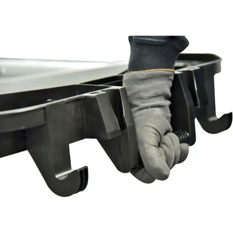 - Outils et matériaux à portée de main : tablette haute outillage grande capacité avec emplacements dédiés et deux crochets intégrés. La tablette est accessoirisable grâce au système de clipsage breveté Lock In System.